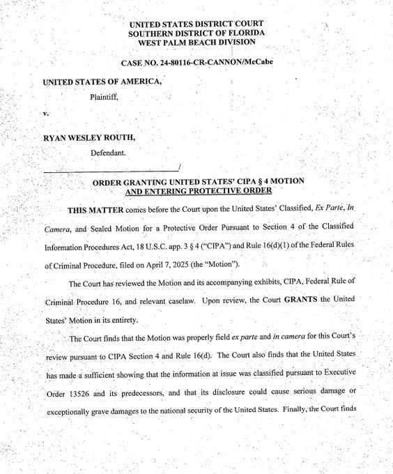 BREAKING: Judge Cannon SEALS Evidence In Trump Assassination Case Involving Ryan Routh Citing “exceptionally grave damages to U.S. National Security”
