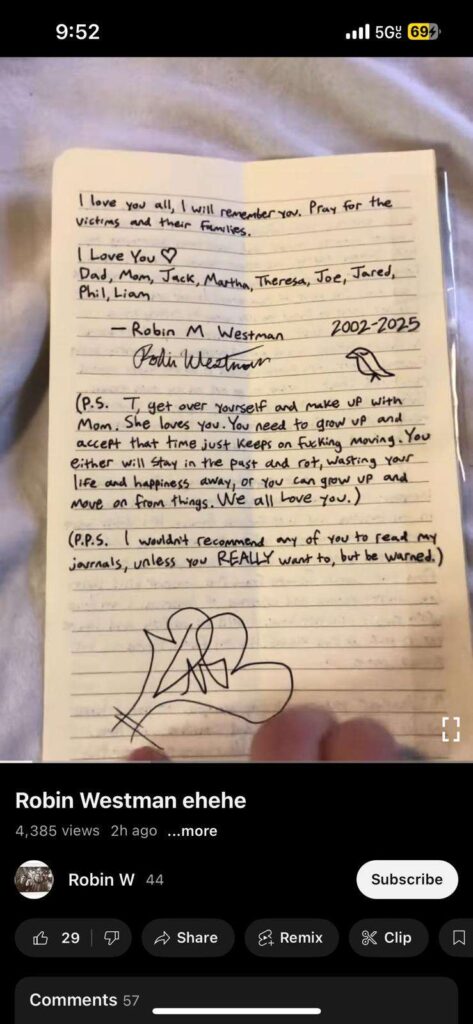 The shooter is allegedly “trans,” going by Robin Westman and Robert Westman, according to Fox News. Pictures have been leaked that show rifle magazines with numerous disturbing inscriptions, as well as his manifesto.