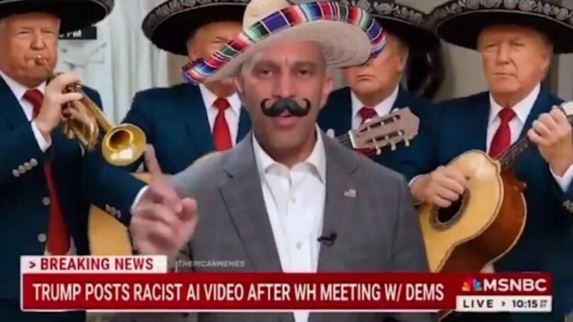 He just posted another meme video of Hakeem Jeffries sporting a ‘stache and sombrero — this time with a Trump mariachi band playing in the background!